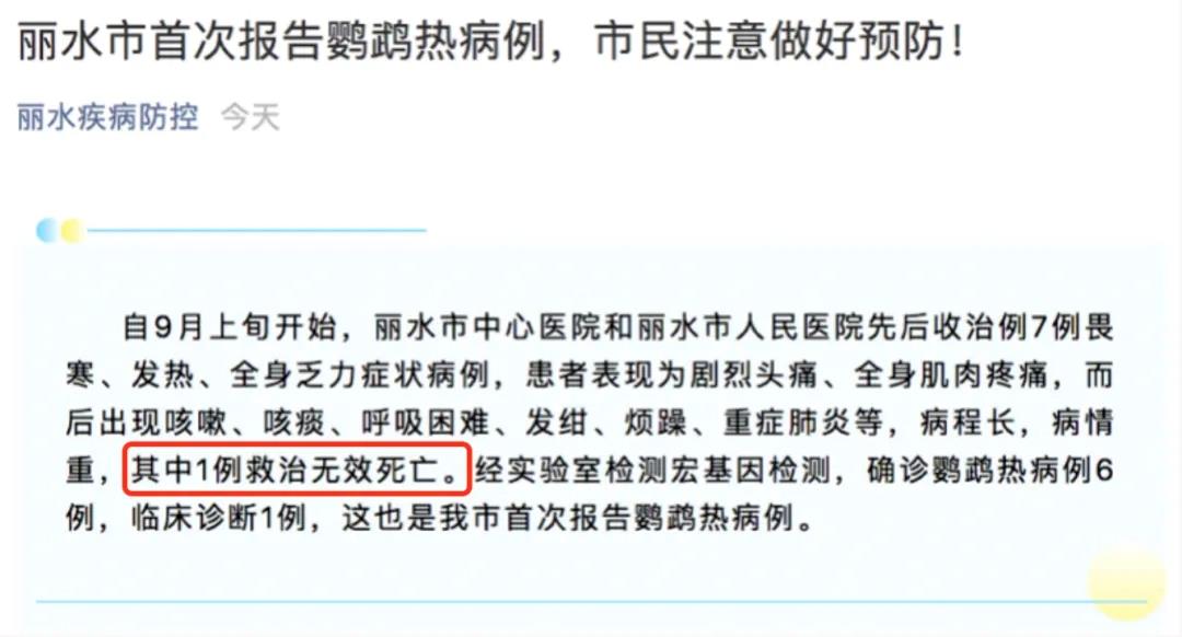 △2021年,浙江丽水曾报告1例鹦鹉热死亡病例