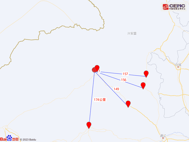 周边县城:震中距霍林郭勒市7公里、距扎鲁特旗149公里、距科尔沁右翼中旗156公里、距突泉县157公里、距巴林左旗174公里,距兴安盟200公里,距长春市488公里。