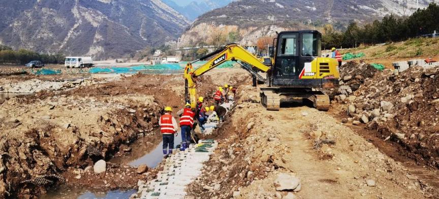 京西门城基础设施投资建设有限公司作为区水务局代建单位,正利用秋冬施工黄金期,加快推进施工建设。在施工现场,10余台工程车、挖掘机密切配合,清理导流围堰、运输砾料。在浅水滩,小型机械和人工相互配合铺筑生态砖,现场作业井然有序。