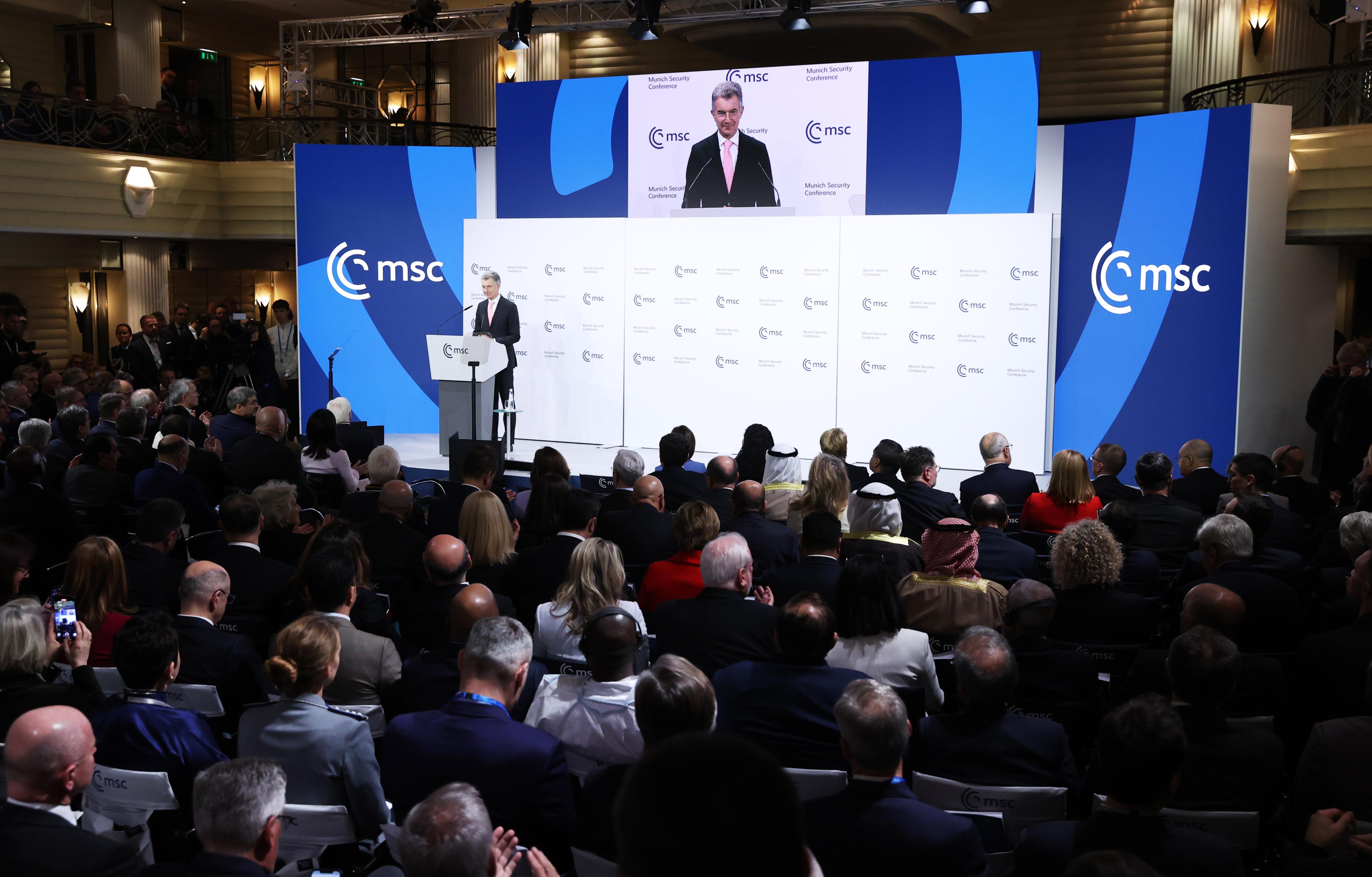 图为2月14日在德国慕尼黑拍摄的慕安会开幕式现场。新华社记者高静摄