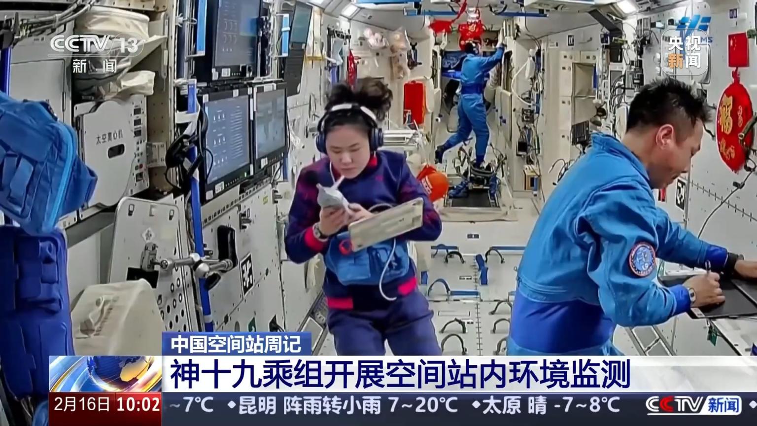 在舱内环境监测方面,乘组使用专业测量设备完成了个人噪声暴露剂量测量、声环境监测、气体检测、风速测量等多项工作。