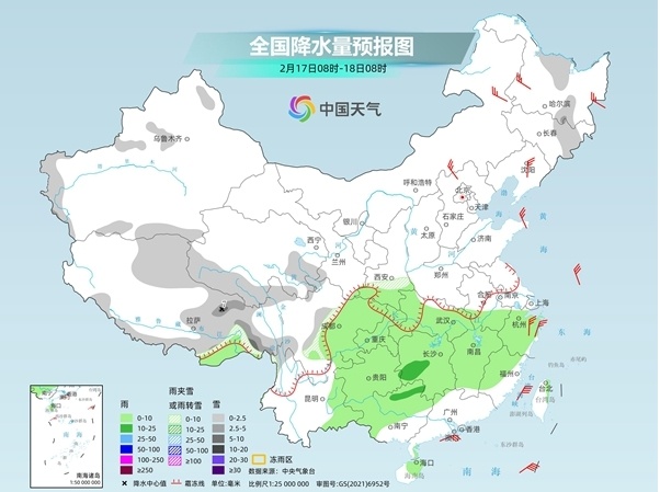其中今天,内蒙古东北部、黑龙江中南部、吉林中东部、新疆西部山区、西藏东部、青海南部、川西高原等地部分地区有小雪或雨夹雪,其中,黑龙江南部、青海南部、川西高原北部等地部分地区有中雪,局地大雪。西南地区东部、江南西部、华南西部、海南岛东部、台湾岛东部等地部分地区有小雨,其中,湖南西部、贵州东部和西南部、云南东部、广西西南部等地部分地区有中雨。